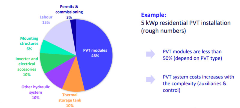 Figure 1: Estimated cost breakdown of a residential PVT system